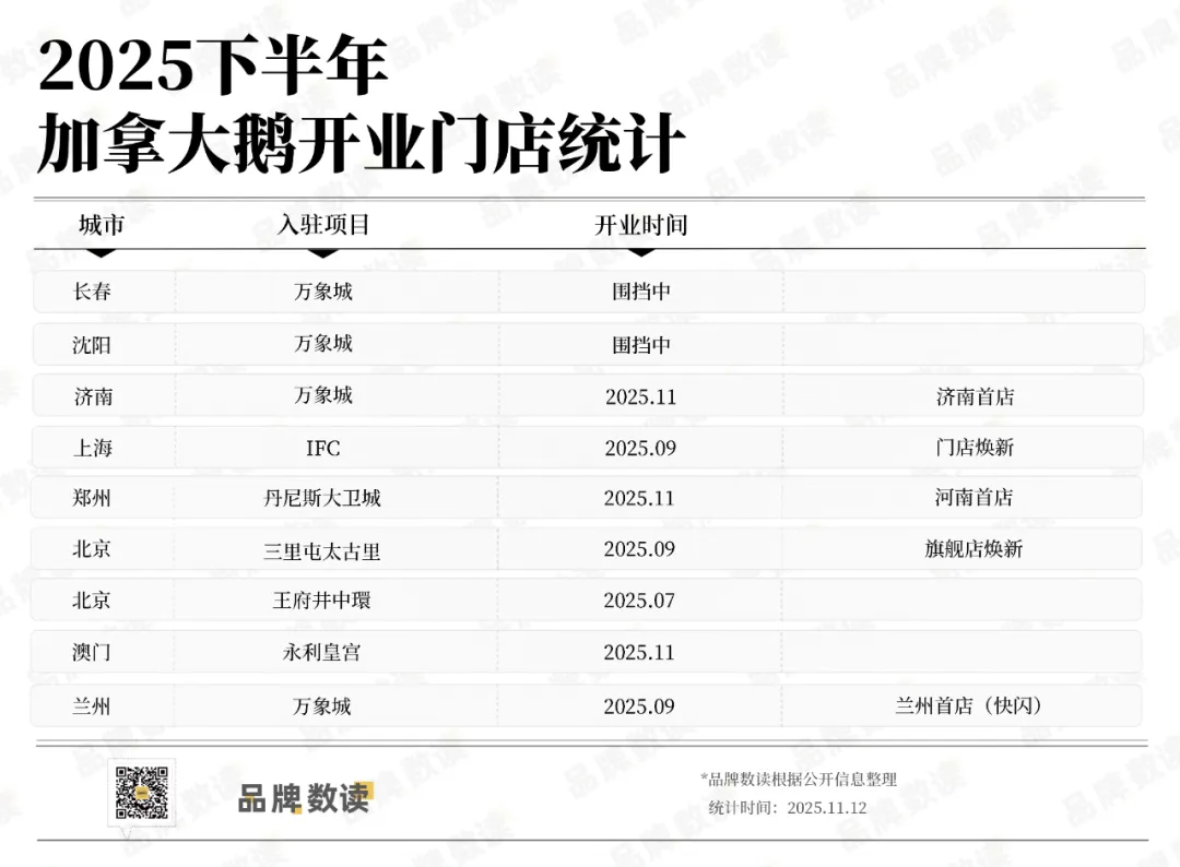 据品牌数读不完全统计,仅今年下半年,加拿大鹅新开的门店中,就有近八成开在北部地区,或是偏北方气候相对寒冷的地区。