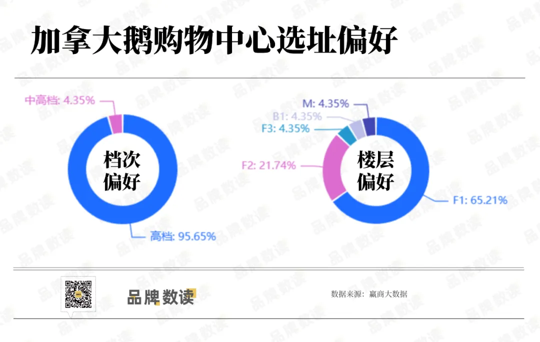 而且品牌数读观察到,对标国际一线奢侈品牌,加拿大鹅新开门店几乎都落位在高端购物中心的一楼,且旗舰店大多是多层店型,仅有个别门店选择其他楼层,如上海IFC店位于负一层。