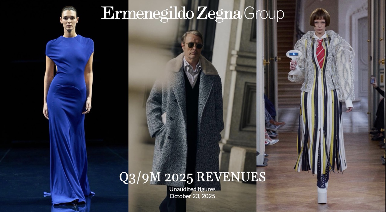 美东时间10月23日开盘前,意大利奢侈品集团 Ermenegildo Zegna(杰尼亚)公布了截至9月30日的2025财年前9个月及第三季度未经审计的关键财务数据:前九个月营收同比下降2.3%至13.33...