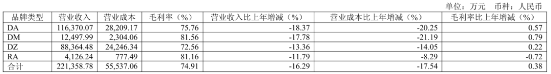 不仅如此,其旗下四个品牌销售量相比上年均出现不同程度下滑,其中RAZZLE销售量比上年下滑达39.65%,RAZZLE营业收入为4126.24万元,较去年下降11.79%,毛利率也较去年下降0.72%。相较于旗下另外三个品牌,仅RAZZLE出现了毛利率负增长。