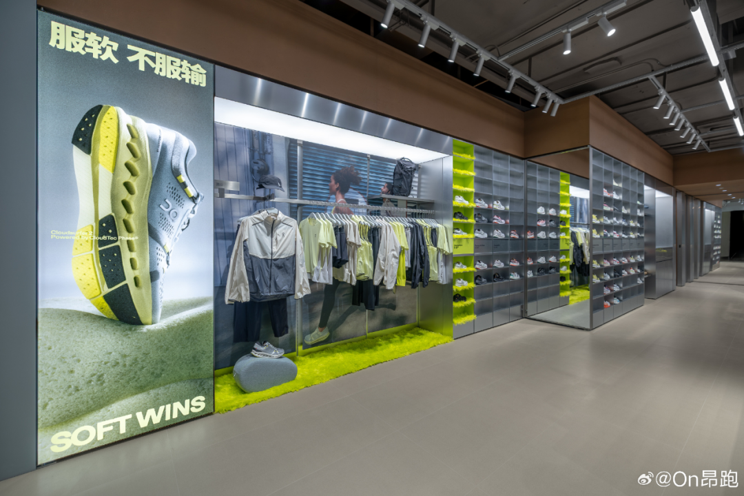 数据显示,截止到今年一季度末,昂跑在中国市场已经开出了65家门店,预计到2026年开到100家,被无数中产群体称之为“跑鞋界的苹果”。