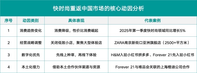 快时尚品牌能够重返中国市场并实现业绩增长,是多重因素共同作用的结果: