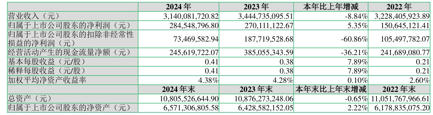 其2024年全年营业收入便已经下降至31.40亿元,同比下滑8.84%。更为严峻的是,代表主业真实盈利能力的扣除非经常性损益的净利润,从2023年的1.88亿元断崖式下跌至2024年的7347万元,降幅高达60.86%。