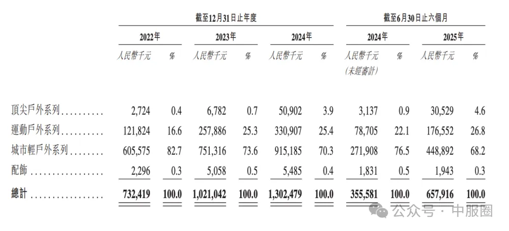 据了解,坦博尔原本是一家国产羽绒服的“老品牌”,后拓展扩展户外运动市场。目前的产品体系涵盖顶尖户外系列、运动户外系列、城市轻户外系列,截至今年6月底共有687个SKU。2025年上半年,城市轻户外系列的收入约4.48亿元,占收入比重达68.2%;运动户外系列占比达26.8%;顶尖户外系列占比为4.6%。