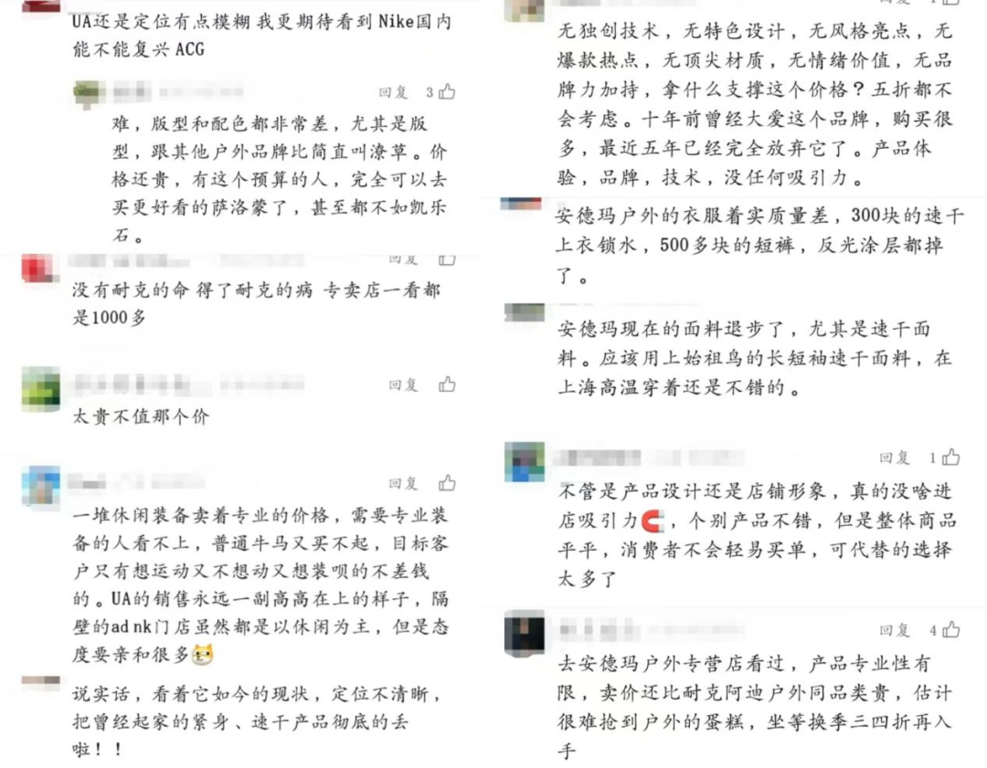 然而,在高端定位与高昂宣传成本等作用下,安德玛户外一边背负专业不足的嫌疑,一边仍把产品定价设至与许多专业户外品牌相近水平,由此,品牌也陷入更多争议。