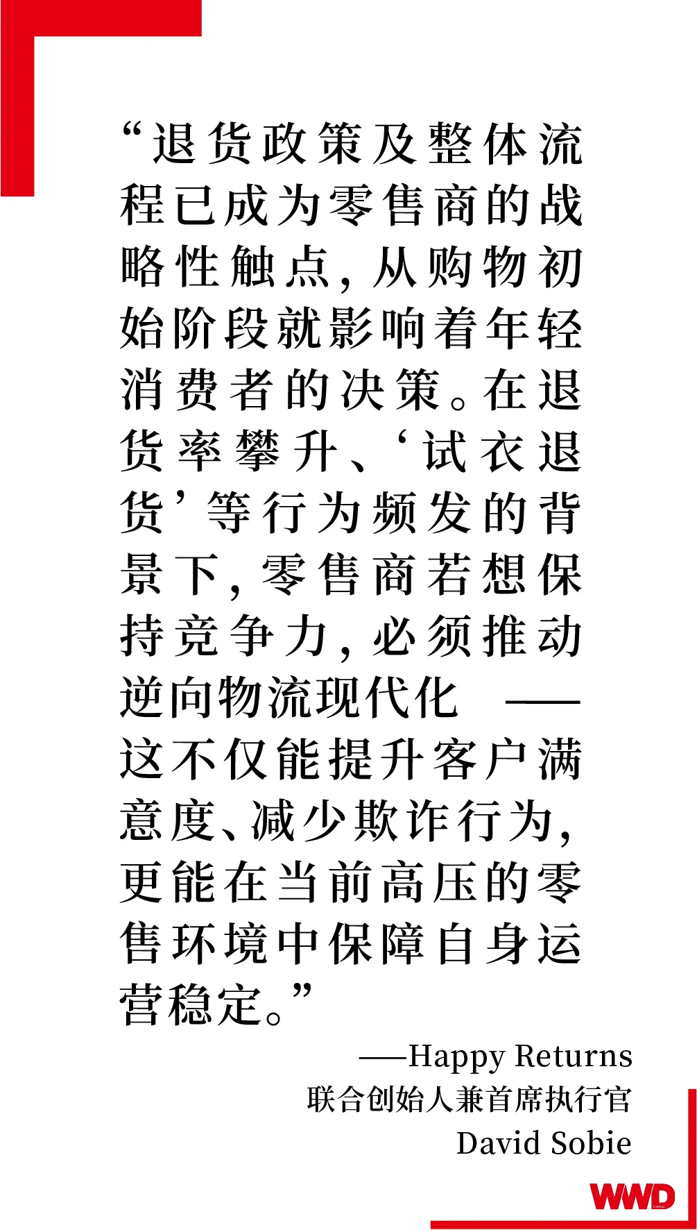 Happy Returns 联合创始人兼首席执行官 David Sobie 对行业趋势做出总结:“退货政策及整体流程已成为零售商的战略性触点,从购物初始阶段就影响着年轻消费者的决策。在退货率攀升、‘试衣退货’等行为频发的背景下,零售商若想保持竞争力,必须推动逆向物流现代化 —— 这不仅能提升客户满意度、减少欺诈行为,更能在当前高压的零售环境中保障自身运营稳定。”