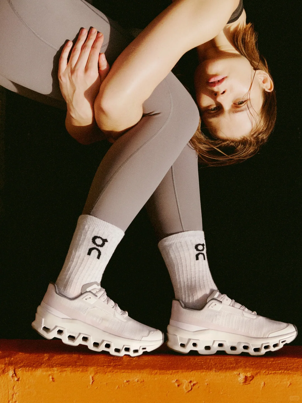 汽车行业白领王怀翎,2023年的时候买了一双昂跑小怪兽一代(Cloudmonster 1),她对昂跑的印象是,“潮流时尚,瑞士进口,有费德勒的光环”。她会在平日上班的时候穿这双鞋,白色款简约百搭,搭配休闲装以及衬衫西裤都很好看。