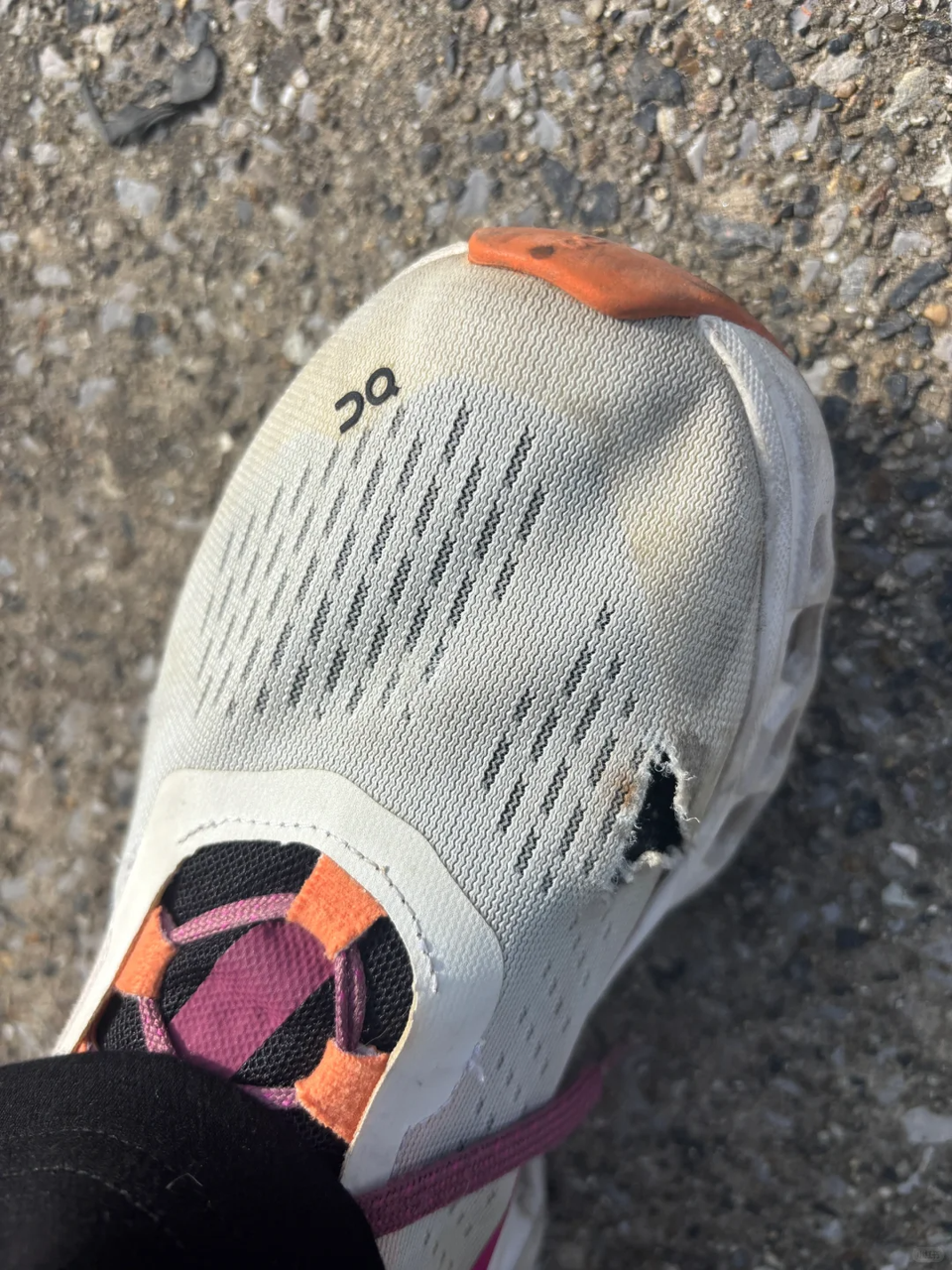 而在国内的社交平台上,昂跑的鞋子易破、溢胶等问题也常常被讨论。怀翎购买的昂跑Cloudmonster系列在穿着七八个月后,鞋面外侧前掌处出现破洞,她称期间只用于通勤和一次短途爬山。她将出现的问题发到社交平台,很多消费者表示同款鞋都出现同一位置的破洞,甚至调侃“破了才说明是真的昂跑”。