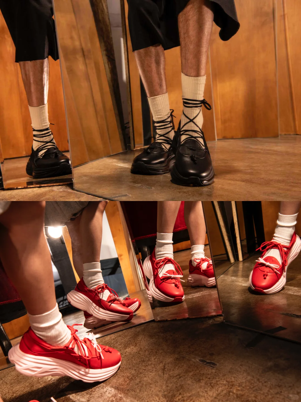 HOKA也在不断尝试让自己变得更潮,扩大时尚影响力。今年4月HOKA与Marni合作推出联名鞋款,但是未见太大水花。10月初,为了迎合今年运动玛丽珍风潮,HOKA还首次推出了首款厚底玛丽珍,但反馈两极分化,整体上有种“好学生”用力过猛的感觉。