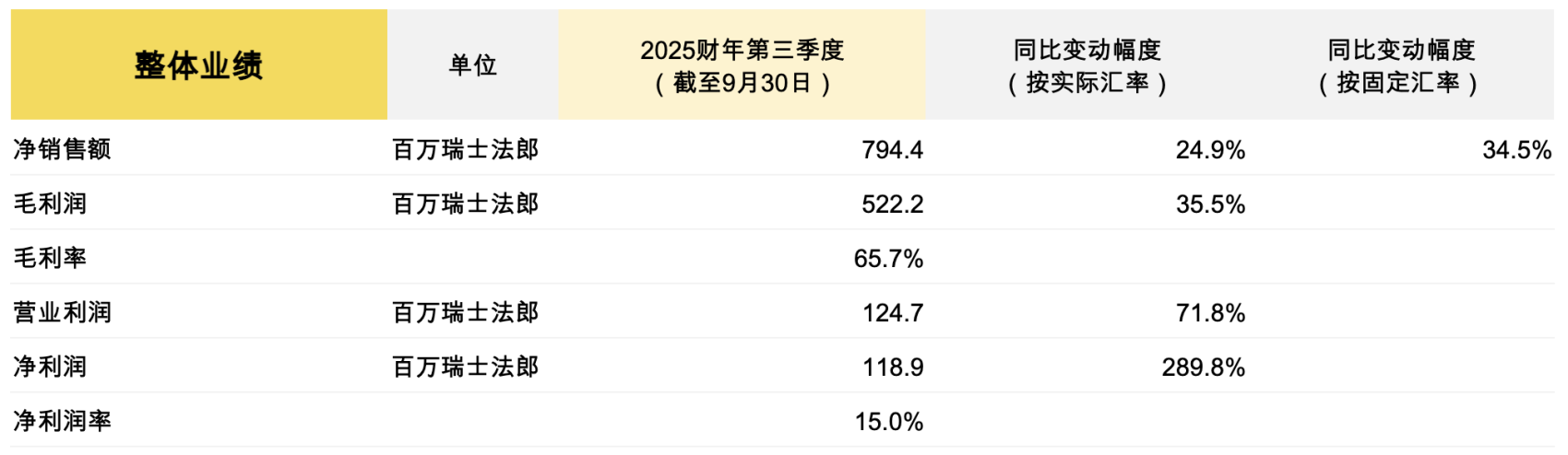 截至9月30日,On 2025财年第三季度关键财务数据如下: