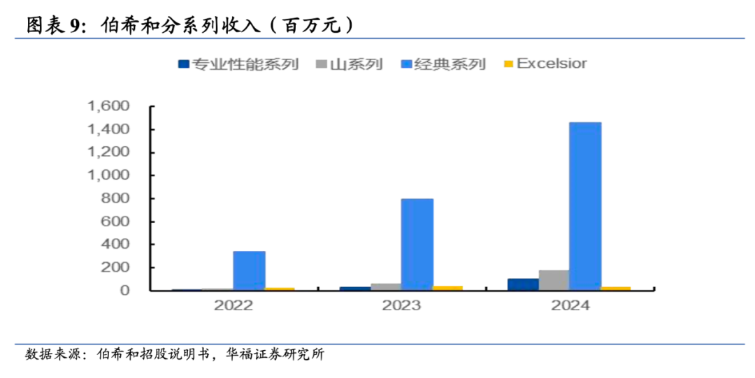 公司援引弗若斯特沙利文报告称,按2024年在线零售额计,伯希和为中国内地第二大冲锋衣裤品牌。其中,伯希和为中国十大冲锋衣裤品牌中增长最快的品牌,2022—2024年按零售额计的CAGR为164.6%。
