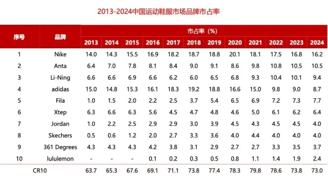 伴随着业绩和规模的双重萎缩,耐克在中国市场份额的领先地位,变得不那么稳固起来。
