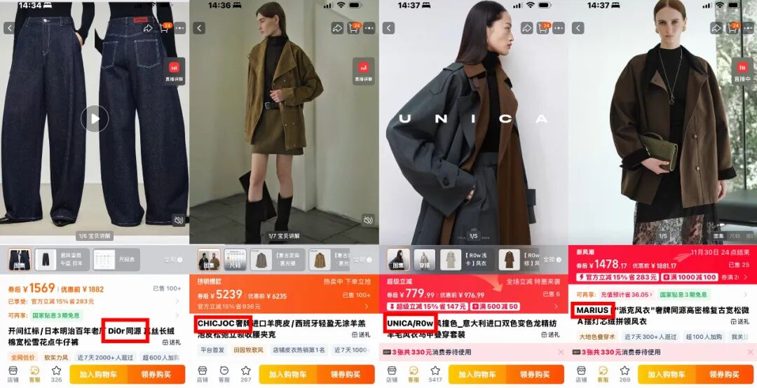 事实上,在天猫旗舰店中,四个品牌都有打出“奢牌同源高端面料”的产品,在社交媒体上,也有网友将其称为“奢侈品平替”,也就是高级基本款。而在定价上,这些品牌在百元至上千元的主流区间,部分单品达到万元价位。