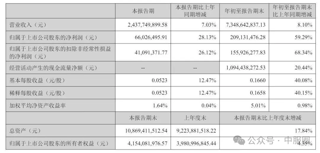 2025年前9个月营收为73.49亿元,较上年同期的68亿元增长8%;期内利润为2.29亿元,上年同期的期内利润为1.55亿元。其中第三季度营收为24.38亿元,同比增长7%;净利为6602万元,同比增长28%;扣非后净利为4109万元,同比增长26%。