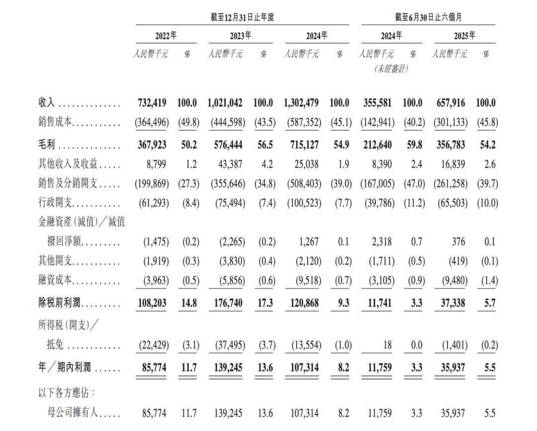 据招股书,2022-2024年坦博尔营收分别为7.32亿元、10.21亿元、13.02亿元,三年复合增长率达到33%,2025年上半年营收为6.58亿元,同比大增85%。