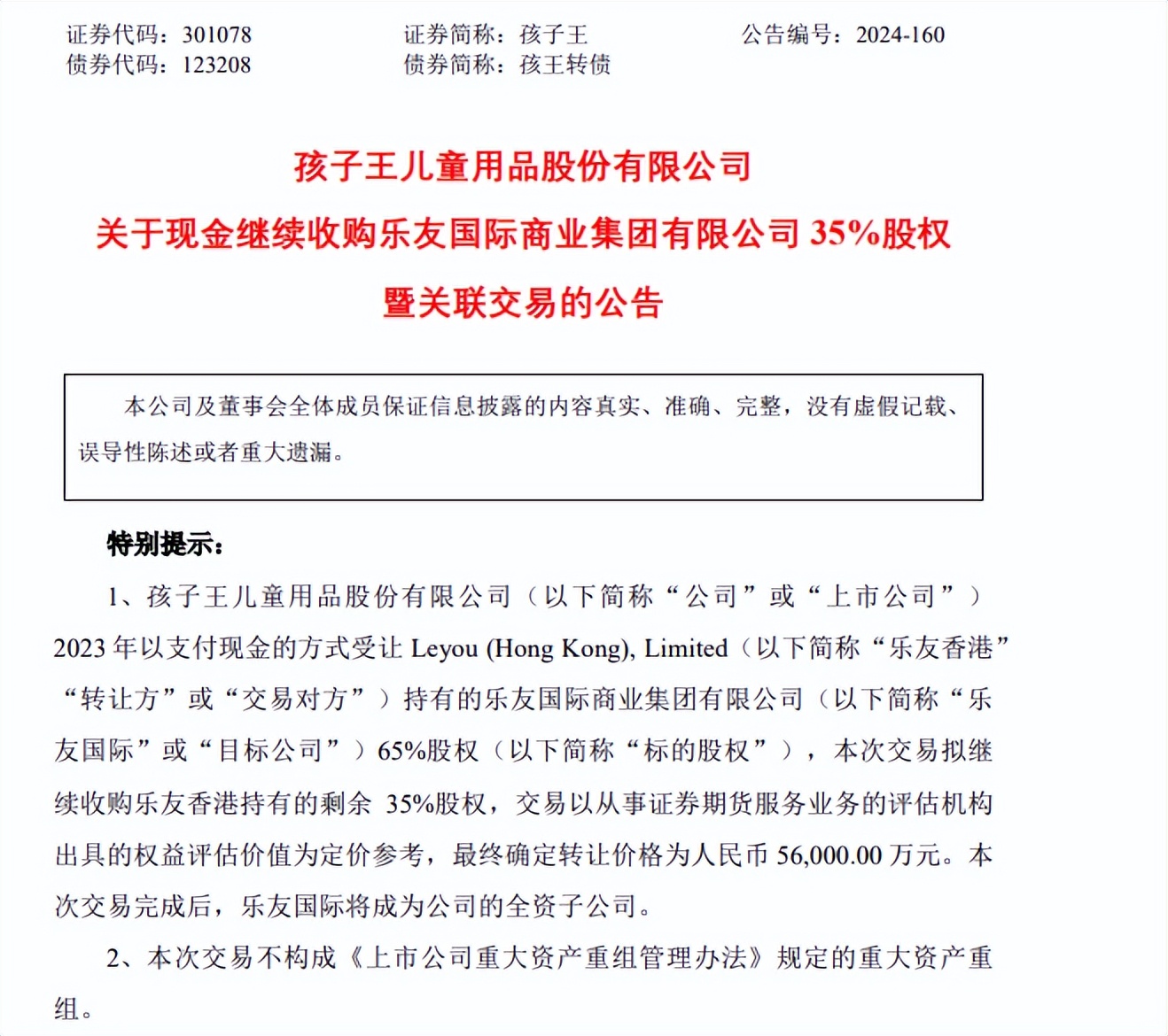 根据孩子王发布的公告,其收购乐友国际已构成关联交易。乐友国际的股东乐友香港是美国华平投资集团和/或关联方控制的主体,而隶属于美国华平投资集团的CoralRoot,正是孩子王的发起人之一;而值得一提的是,CoralRoot从2023年11月就开始减持孩子王股份。